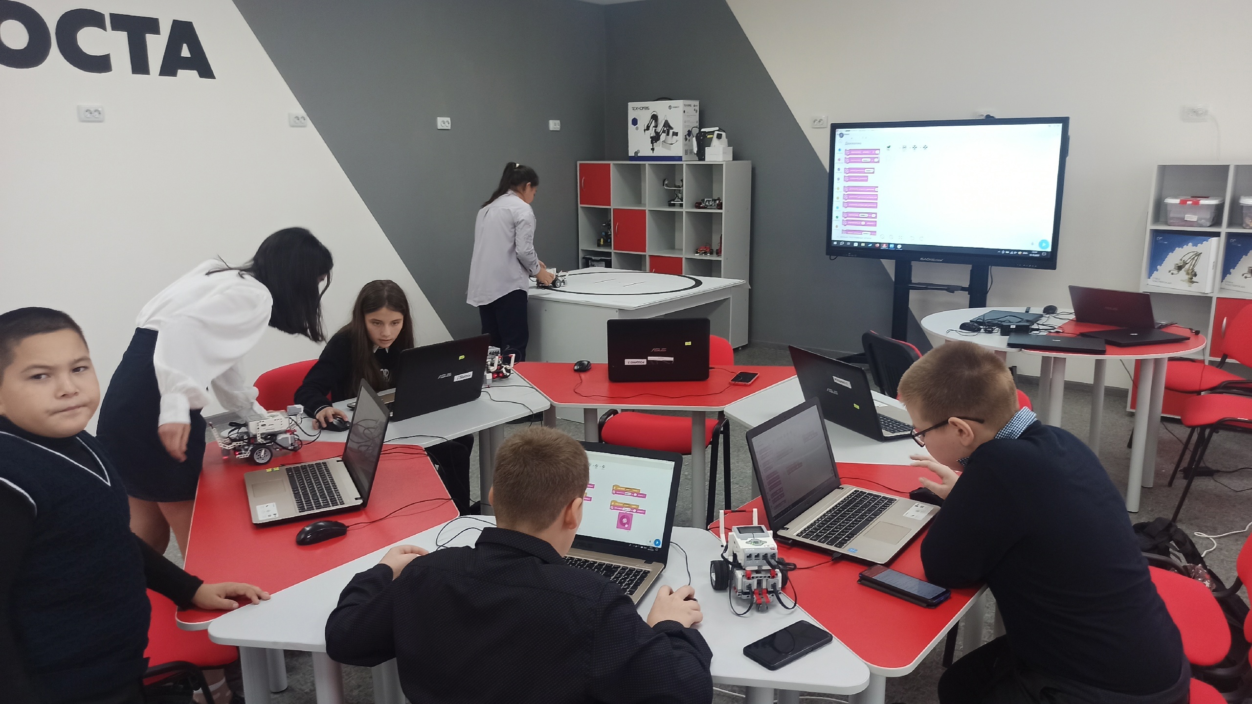 Для всех присутствующих провели экскурсию по крылу здания школы, где открыт центр. Кимал Ибрагимович, наш молодой и очень талантливый педагог, продемонстрировал со своими обучающимися свои наработки, рассказал всем присутствующим о планах и перспективах работы центра.