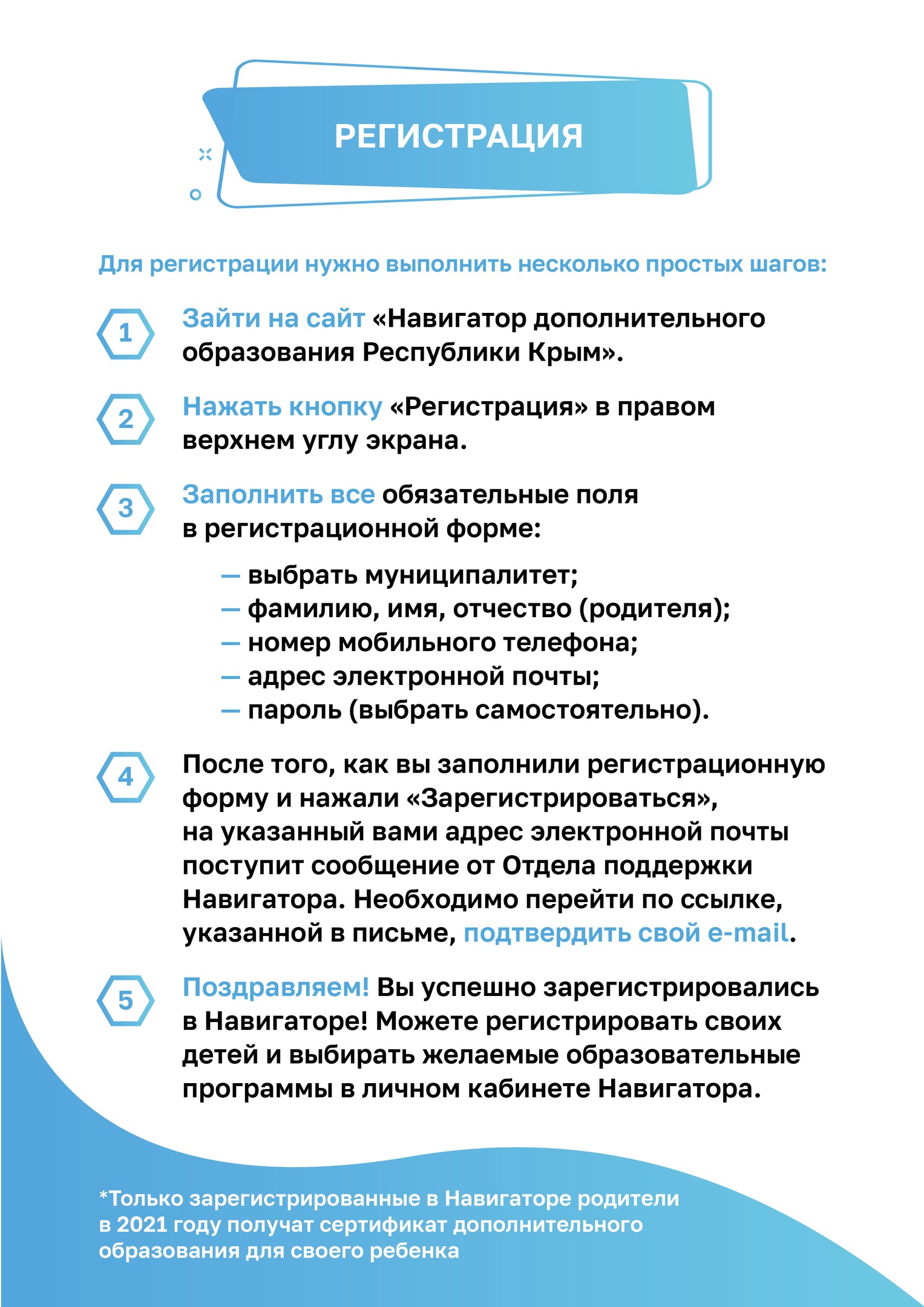Итогом регистрации в Навигаторе является предоставление доступа в личный кабинет родителям (законным представителям).